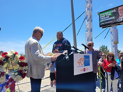Posted May 26, 2023The summer season kicked off in Atlantic City on Friday with the annual “Opening of the Sea” ceremony outside Resorts Hotel Casino. City of Atlantic City Mayor Marty Small, Sr., Atlantic City Police Chief James Sarkos, Atlantic City Fire Chief Scott Evans and Atlantic City of Atlantic City Beach Patrol Chief Steve Downey all welcomed visitors to the city for the summer season.