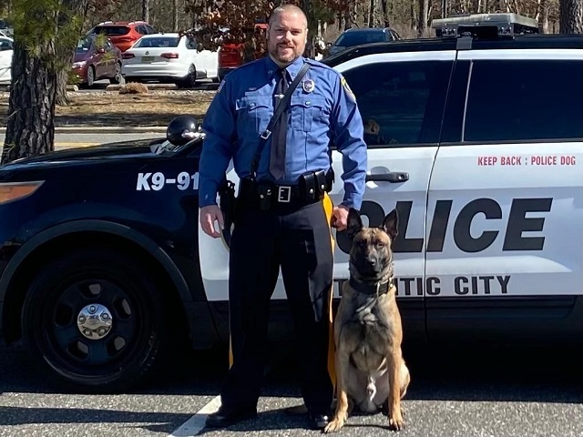 K9 Officer Robert Reynolds and his partner, K9 Carlo (pictured), successfully completed the Patrol Operations & Narcotic Detection Dog Handler Course. They are assigned to the Operations Division. This team is also the recipient of the John “Sonny” Burke Award that was voted on by the members of the K9 academy class. K9 Carlo is one of two K9s donated to the ACPD by Philadelphia Eagles legend Fletcher Cox. In honor of Mr. Cox's dedication, Officer Reynolds's police car has been renumbered to K9-91 which is Mr. Cox's jersey number.
