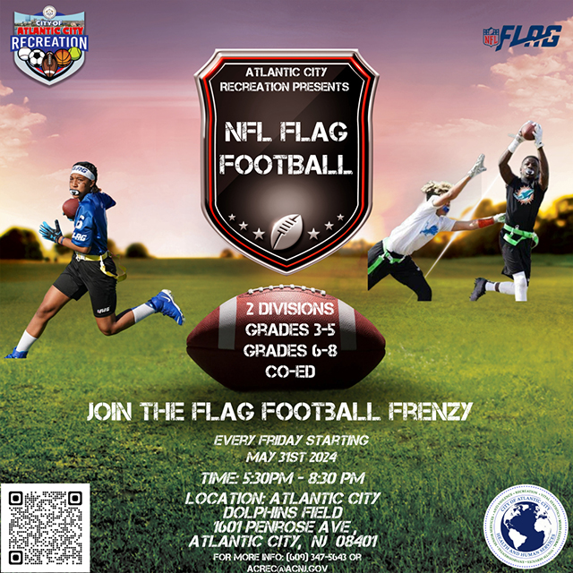Posted May 15, 2024The Atlantic City Recreation division is bringing back Flag Football leagues for children and adults this Spring and Summer.