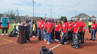 City of Atlantic City Mayor Marty Small, Sr., Atlantic City 5th Ward Councilman Muhammad “Anjum” Zia, City of Atlantic City department directors, students at Sovereign Avenue School and the Atlantic County Utilities Authority (ACUA) all participated in the first cleanup of the Summer at Pete Pallitto Field. During each cleanup, Public Works will have a table setup where they will hand out reusable bags, trash pickers and gloves to residents, and will educate the public on why it’s important to take care of your community, while encouraging them to get involved.