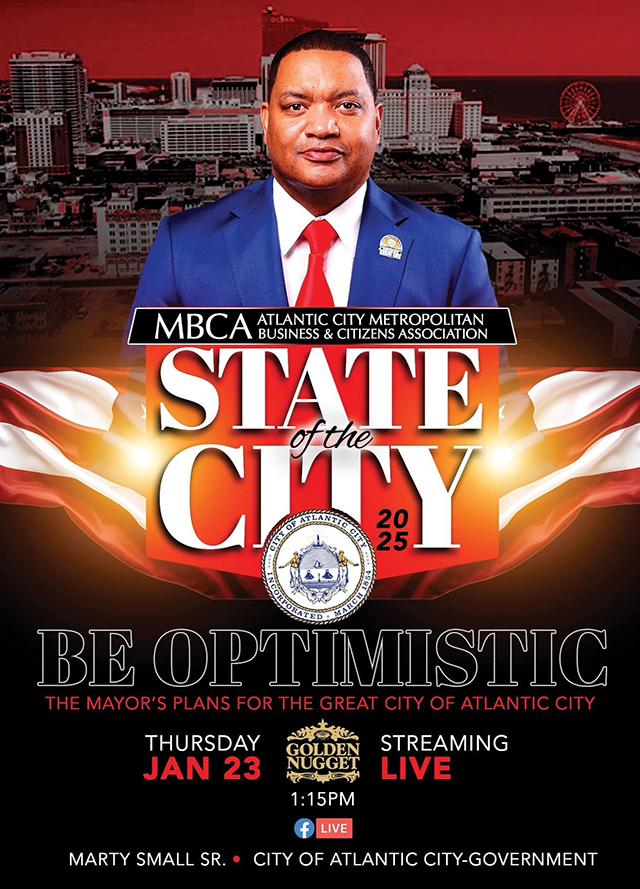 Posted January 23, 2025City of Atlantic City Mayor Marty Small, Sr. is delivering his 2025 State of the City address during the MBCA Foundation 2025 Kickoff Luncheon at Golden Nugget Atlantic City on Thursday, January 23, 2025.