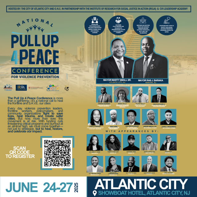 Co-hosted by Mayor Marty Small Sr. of Atlantic City and Mayor Ras J. Baraka of Newark, NJ, in partnership with the City of Atlantic City, O.N.E., the Institute of Research for Social Justice in Action (IRSJA), and the CVI Leadership Academy, the conference will serve as a national call to action for cities on the frontlines of violence and inequity.