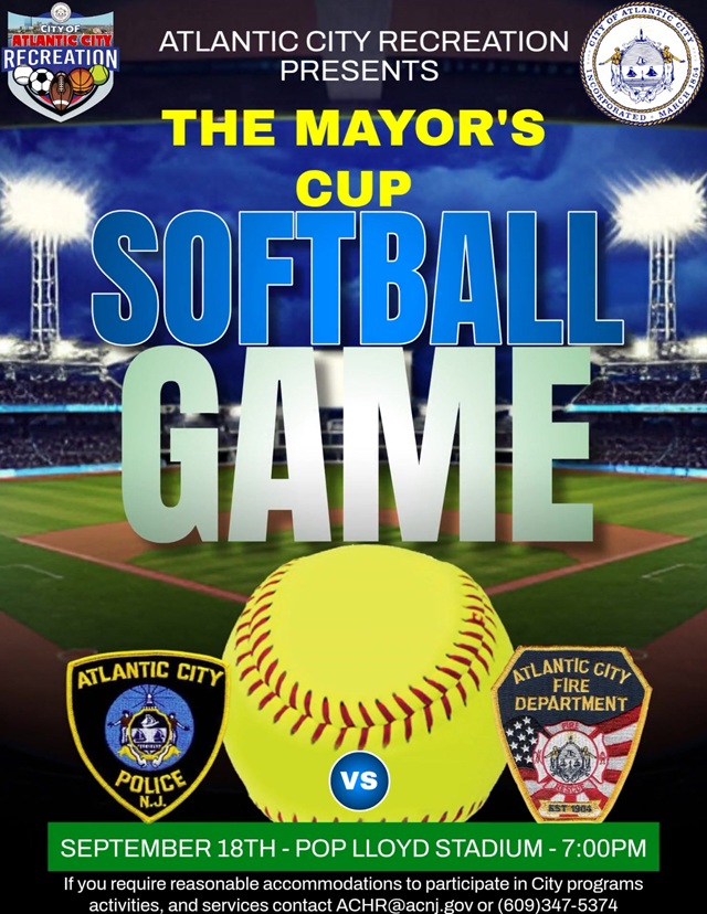 Posted September 15, 2025It’ll be a night of friendly competition and hometown pride on Thursday, September 18, 2025 at 7:00 PM as the Atlantic City Police Department takes on the Atlantic City Fire Department in a spirited softball game at Pop Lloyd Stadium.