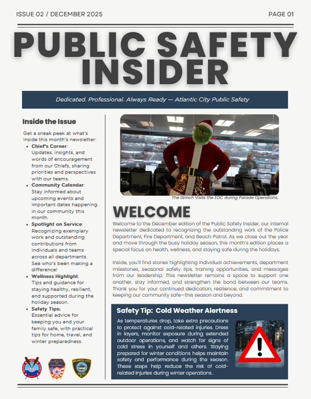 Posted December 22, 2025Atlantic City’s Public Safety agencies continue their new monthly newsletter — The Public Safety Insider.