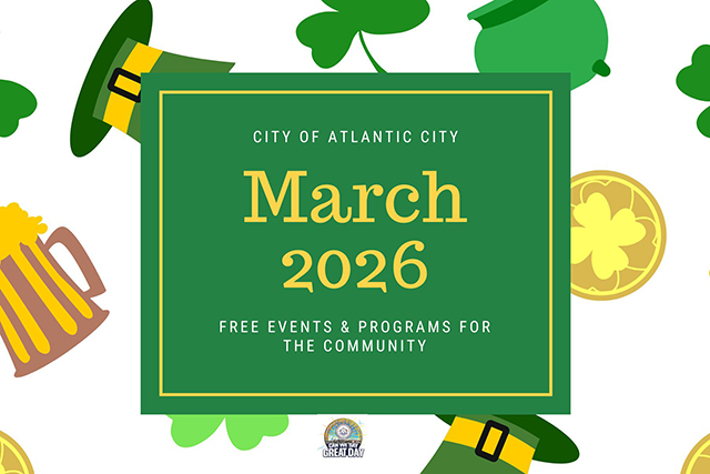 Posted March 04, 2026The City of Atlantic City is proud to offer a variety of free events and programs throughout the month of March for residents and families to enjoy. We encourage everyone to participate and take advantage of these exciting community opportunities. Click the event titles below for additional details and registration information, where applicable.