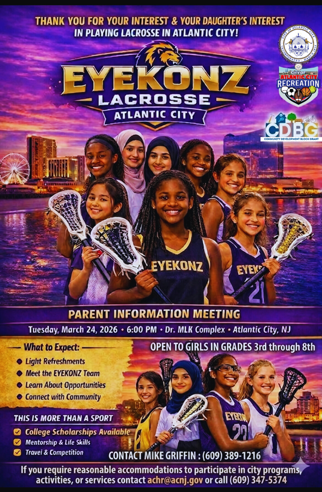 Posted March 19, 2026Atlantic City Recreation is inviting families to learn more about an exciting opportunity for young athletes through the Philadelphia-based Eyekonz Girls Lacrosse program.