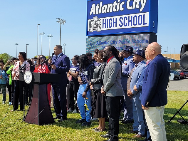 City of Atlantic City Mayor Marty Small, Sr., during a news conference outside Atlantic City High School, announced the details of the historic “Mayor Marty Small, Sr. Scholarship” that will initially be awarded to 100 Atlantic City residents.